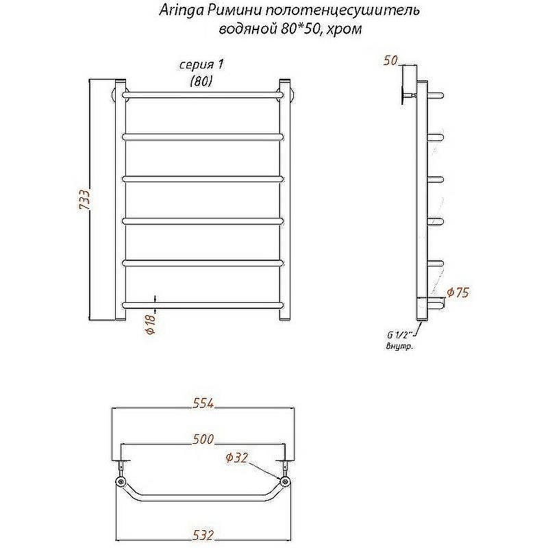 Полотенцесушитель водяной Aringa Римини AR03023CH 50х80 см