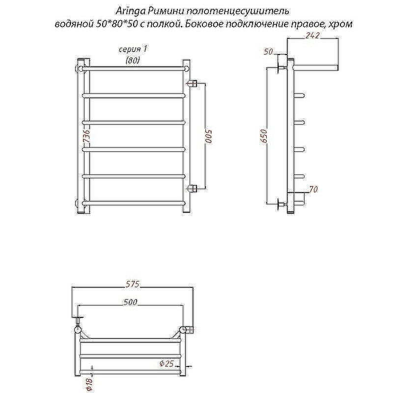 Полотенцесушитель водяной Aringa Римини AR03025CH 50х80х50 см