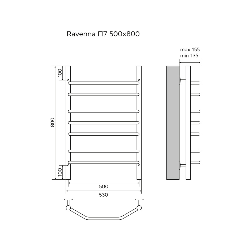 - Размер полотенцесушителя 53,2х88 см