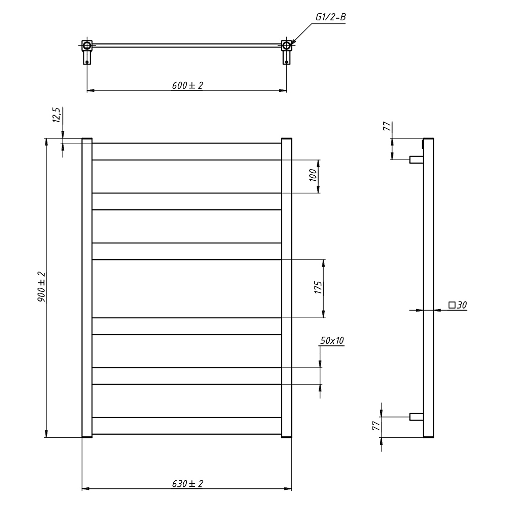 - Размер полотенцесушителя 63х90 см