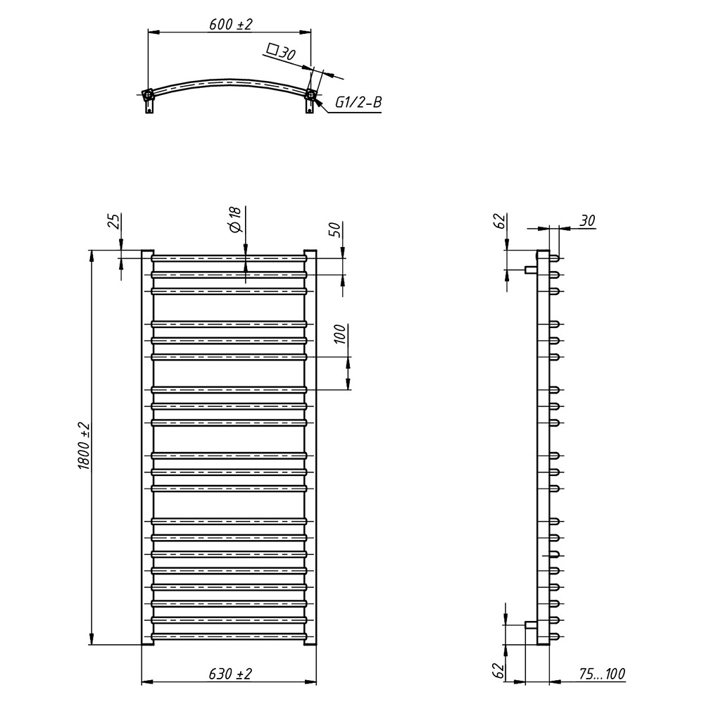 Полотенцесушитель водяной Grota Calma KR-00054818 63x180 см