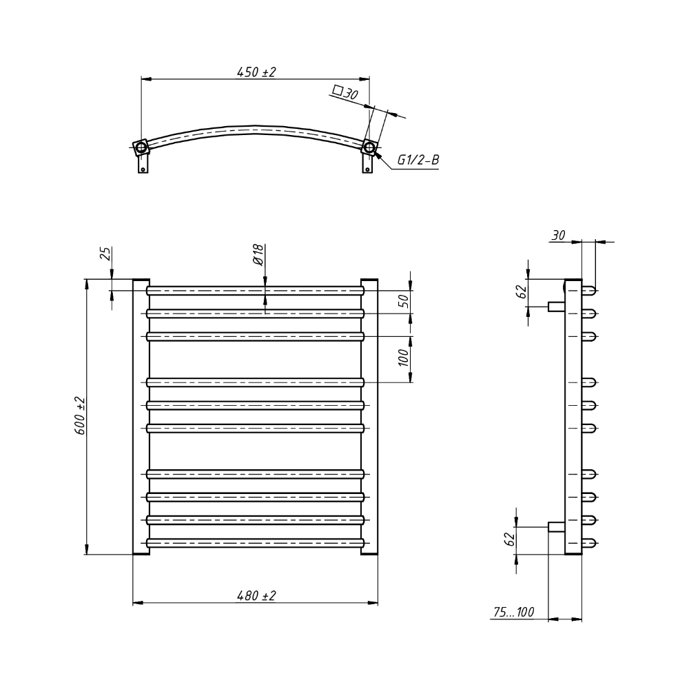 Полотенцесушитель водяной Grota Calma PS-CALMA-480x600-(450)- 48х60 см
