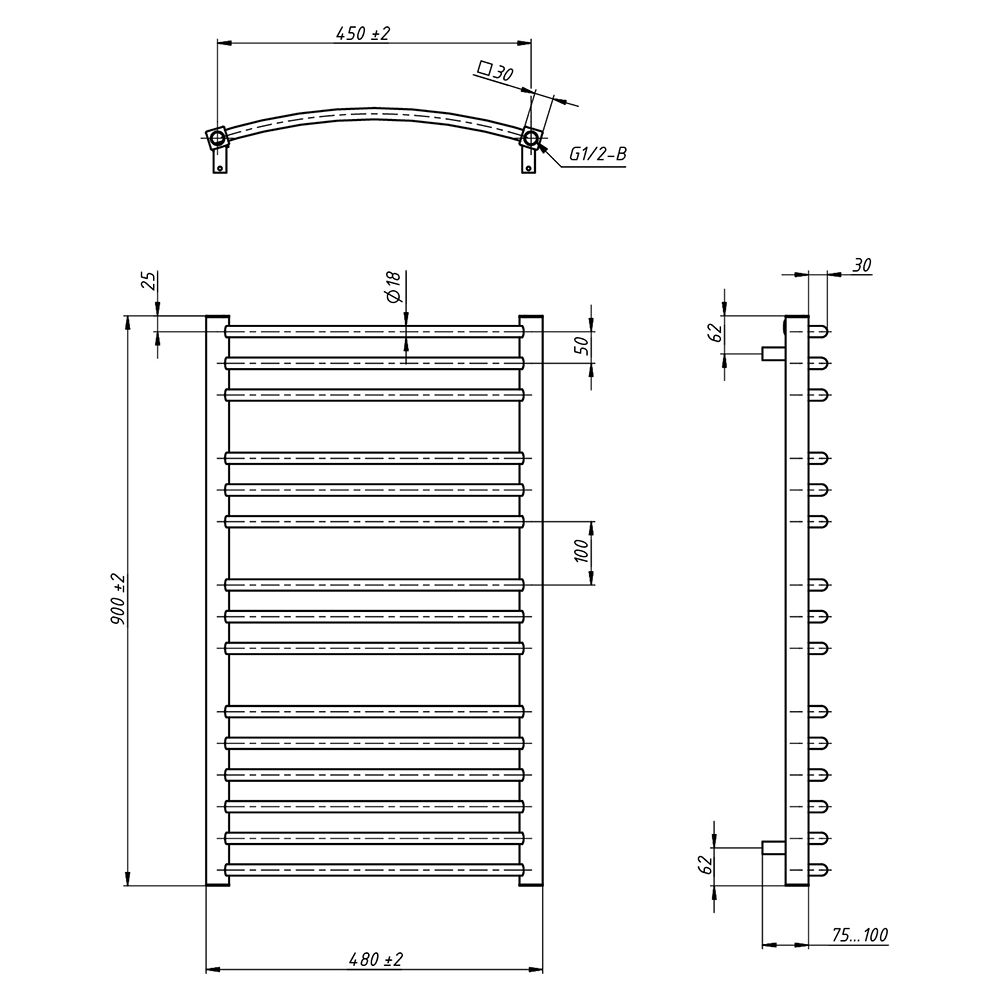 Полотенцесушитель водяной Grota Calma PS-CALMA-480x900 48x90 см