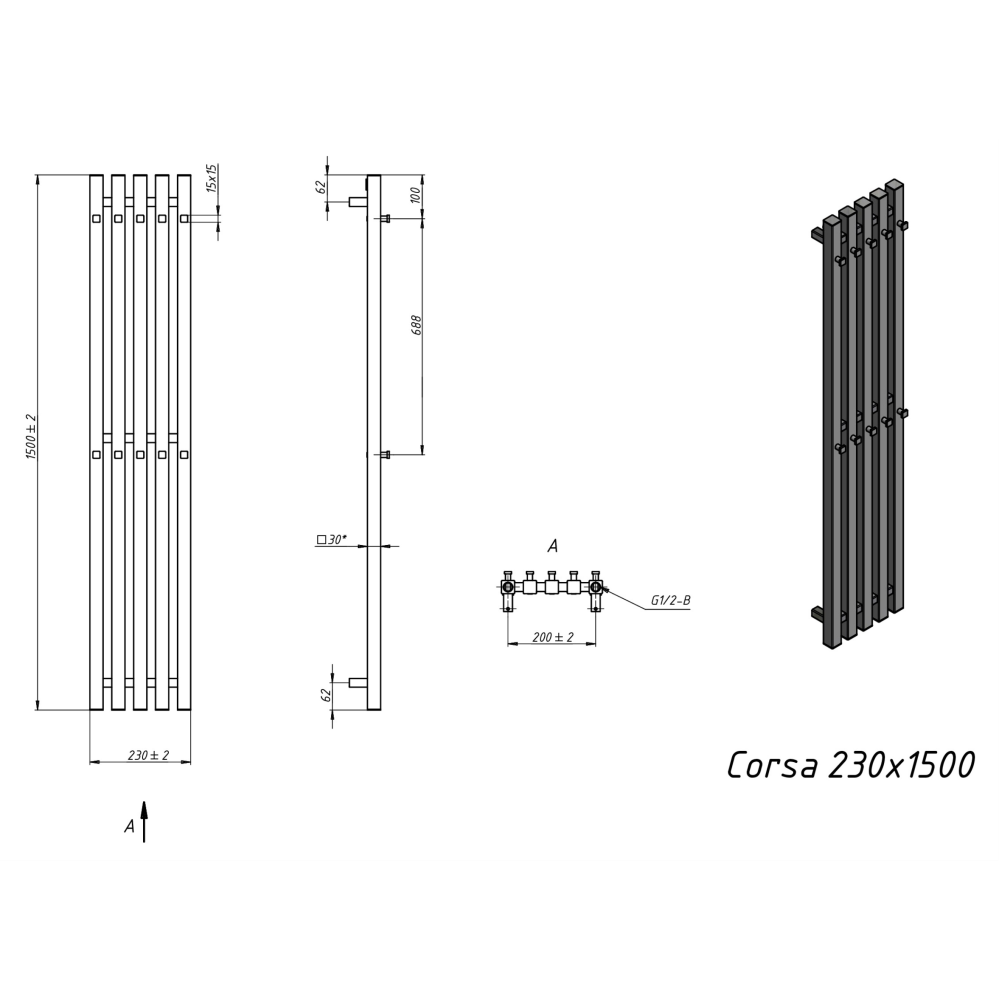 Полотенцесушитель водяной Grota Corsa PS-Corsa-230*1500-s-kryuchkami-NP-GROTA 23х150 см