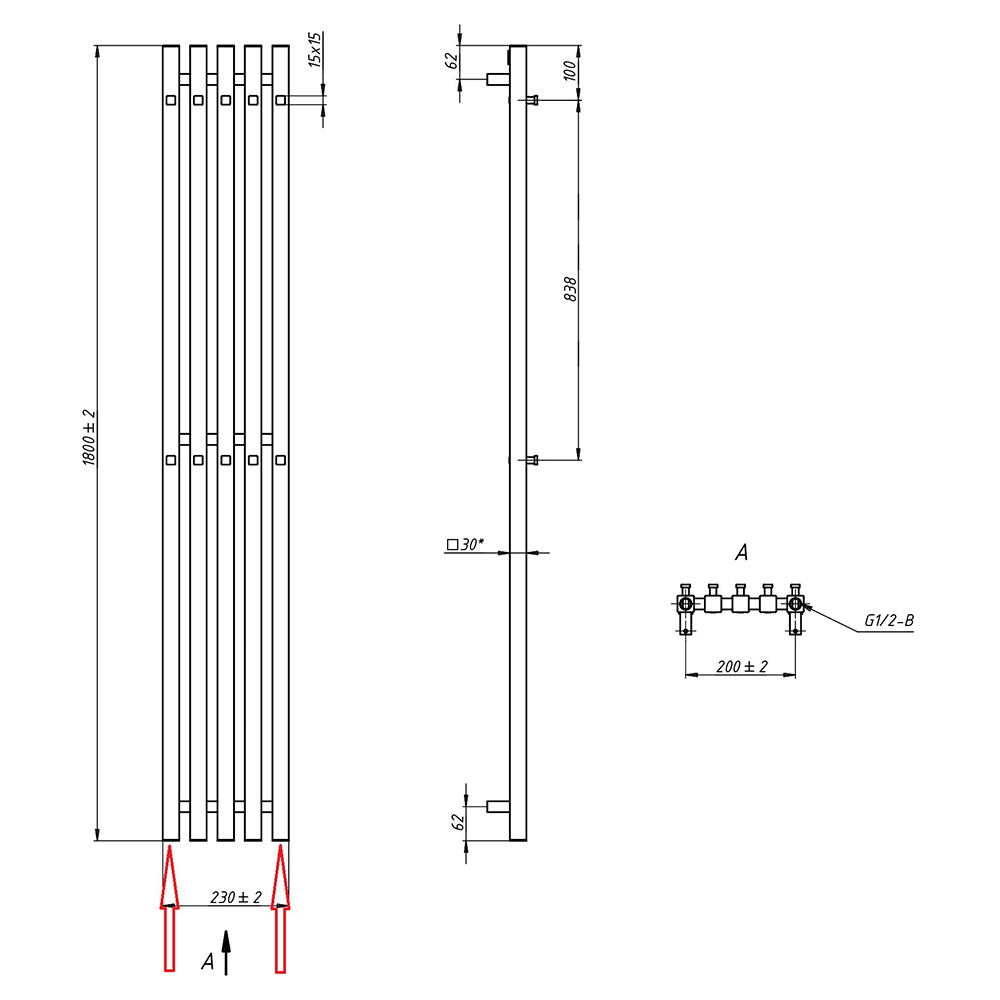 Полотенцесушитель водяной Grota Corsa PS-Corsa-230*1800-s-kryuchkami-NP-GROTA 23х180 см