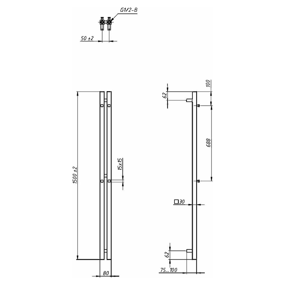 - Размер полотенцесушителя 8х150 см