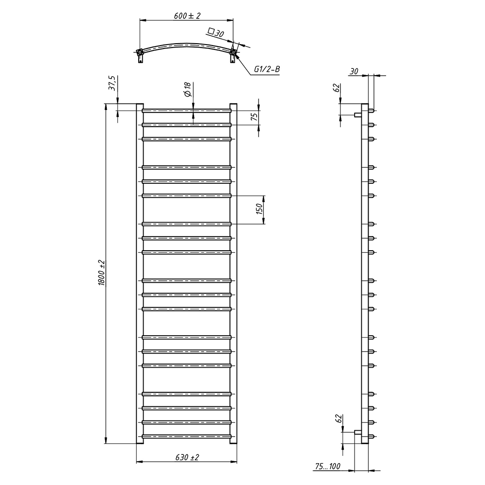 - Размер полотенцесушителя 63х180 см