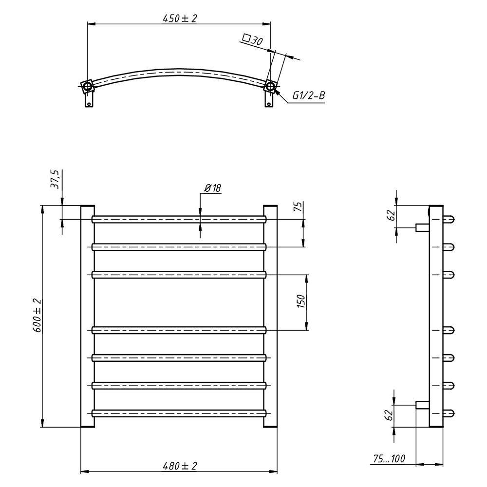 - Размер полотенцесушителя 48х60 см