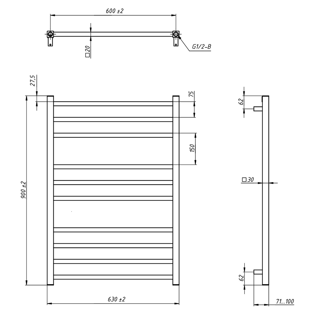 - Размер полотенцесушителя 63х90 см