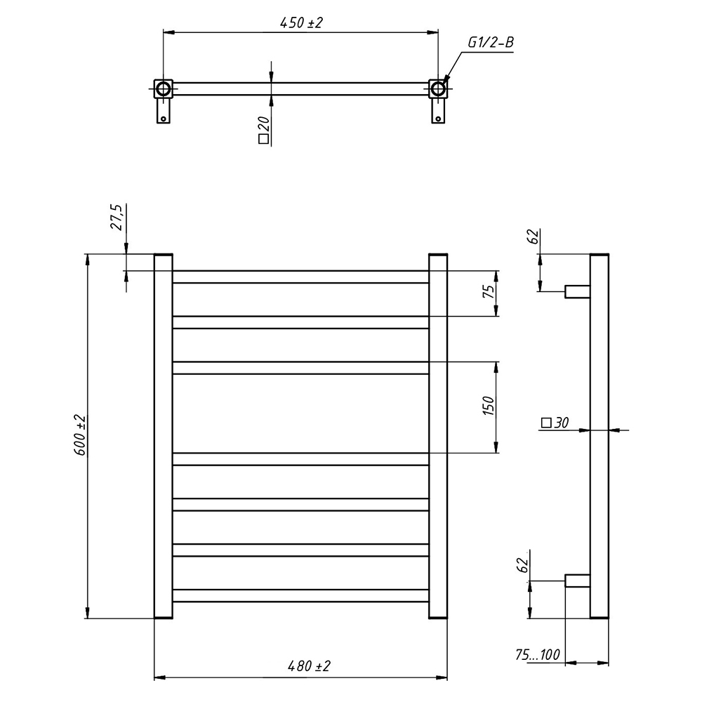 Полотенцесушитель водяной Grota Estro KR-00054919 48x60 см