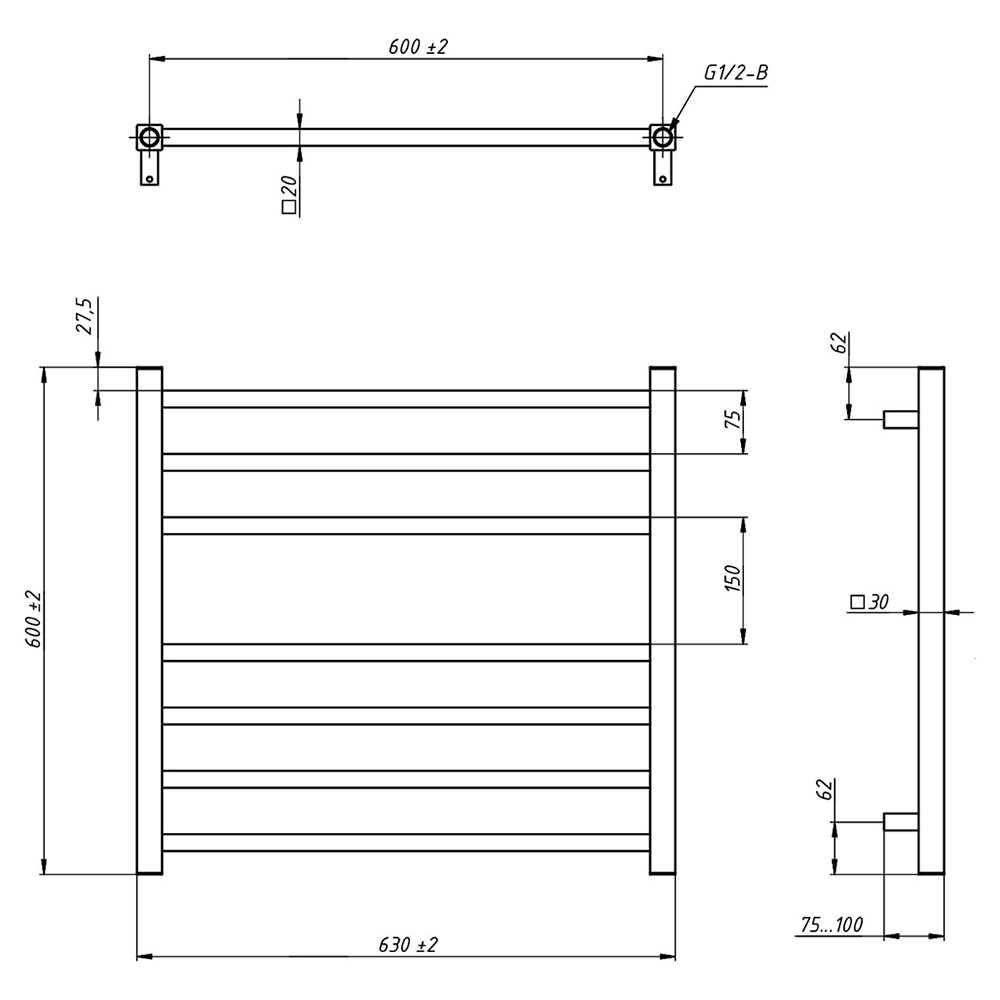 - Размер полотенцесушителя 63х60 см
