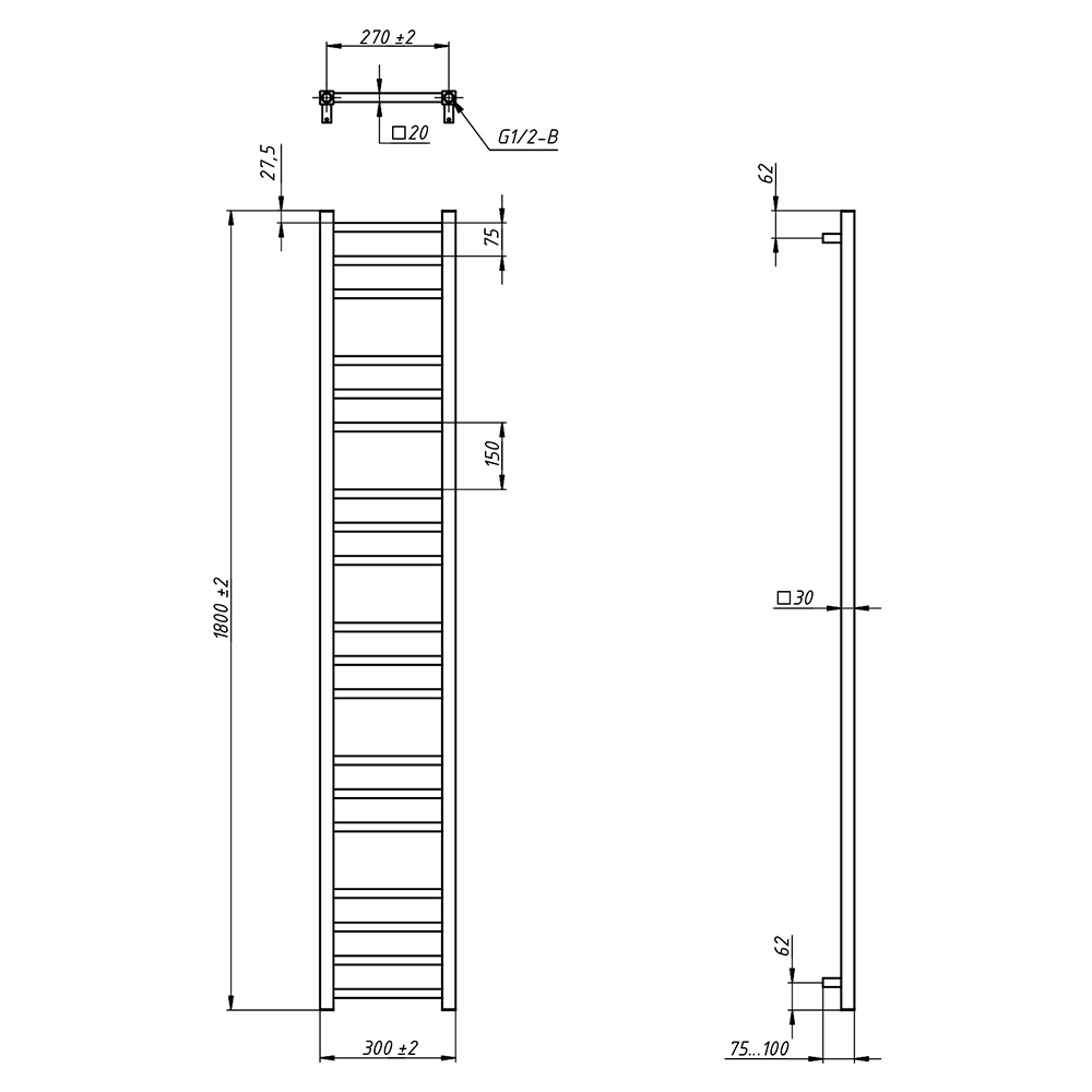 - Размер полотенцесушителя 30х180 см