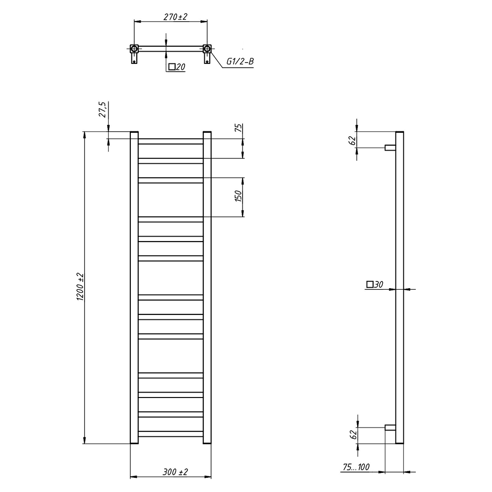 - Размер полотенцесушителя 30х120 см