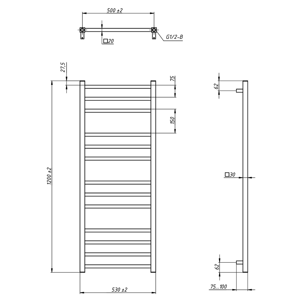 Полотенцесушитель водяной Grota Estro PS-ESTRO-530x1200-(500) 53x120 см