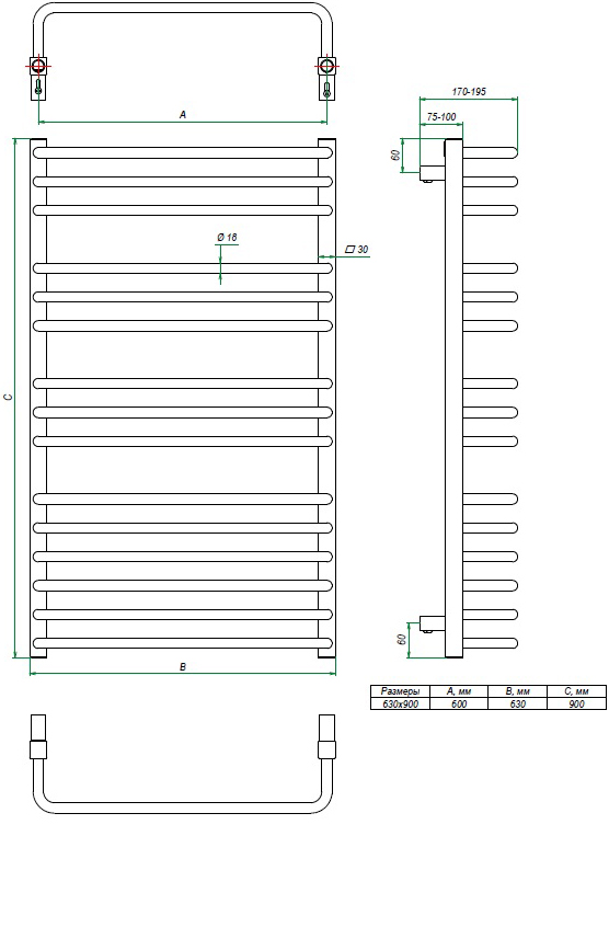 Полотенцесушитель водяной Grota Forte PS-FORTE-630x900 63x90 см