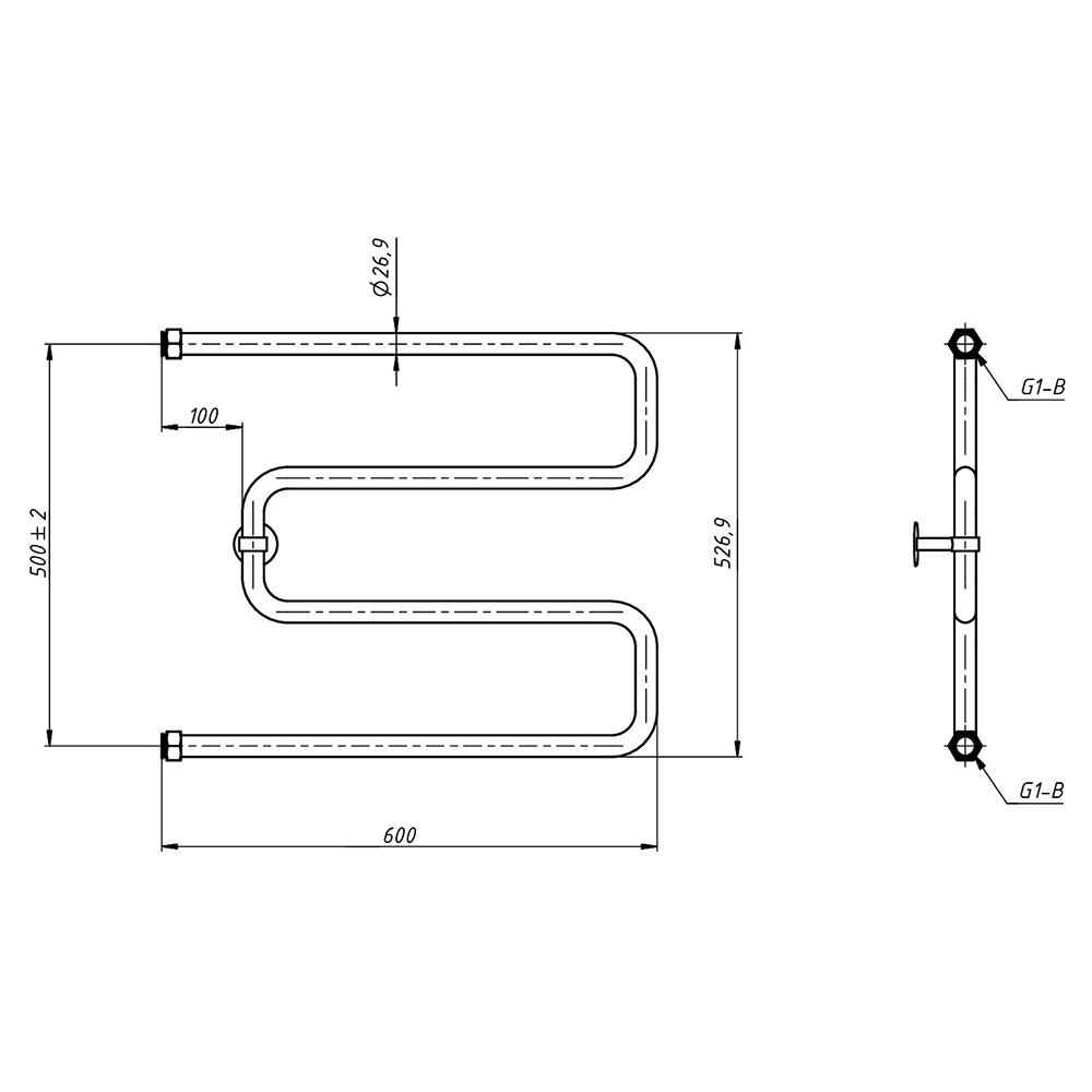 - Размер полотенцесушителя 60х50 см