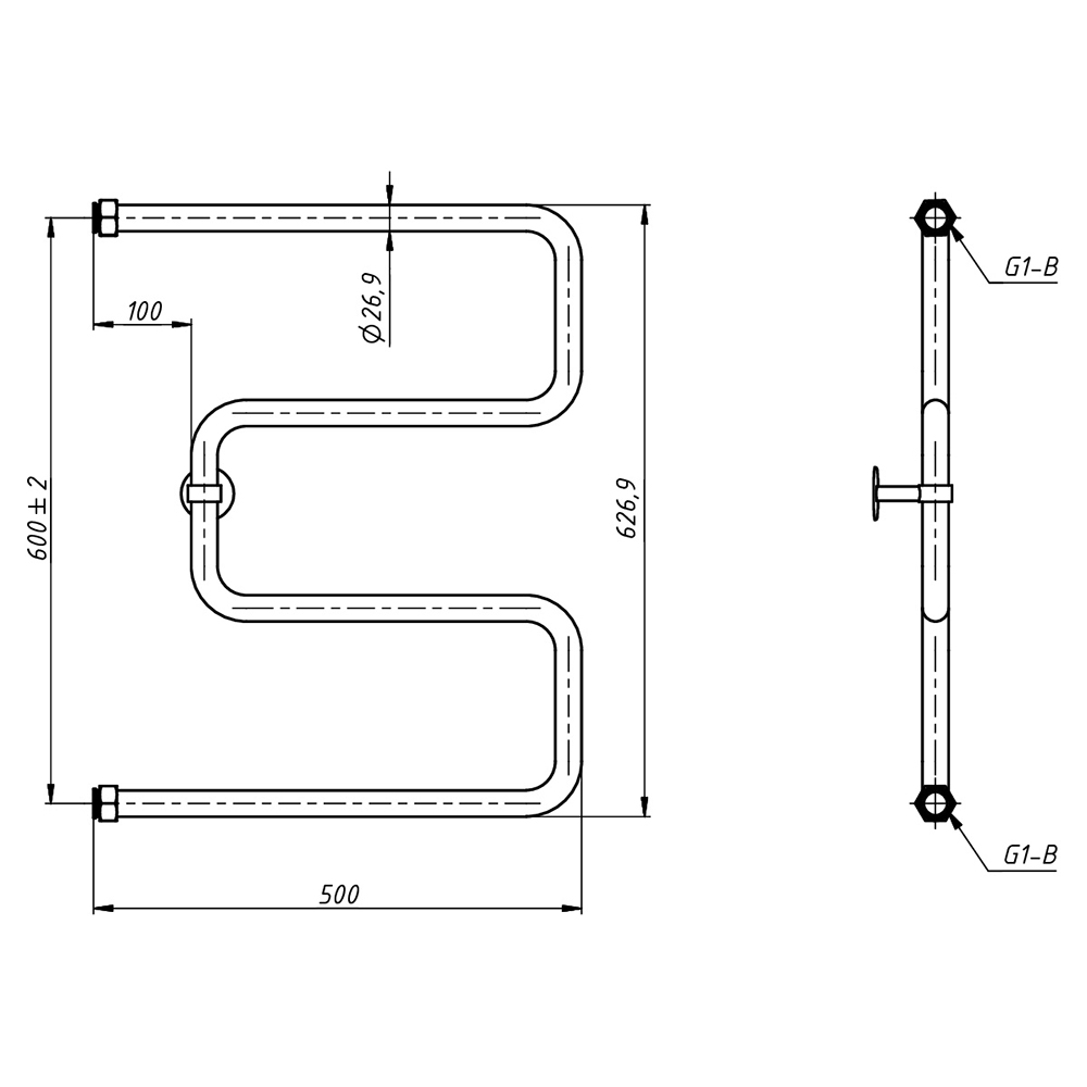 Полотенцесушитель водяной Grota Kamelo PS-KAMELO-600x500 50x60 см