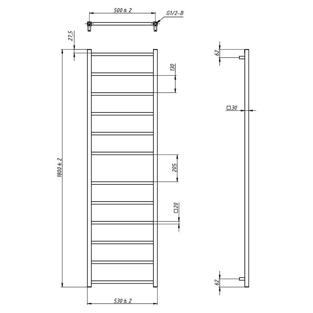 - Размер полотенцесушителя 53х180 см