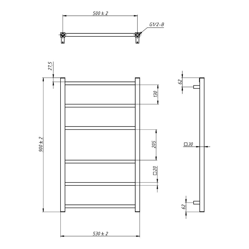 - Размер полотенцесушителя 53х90 см