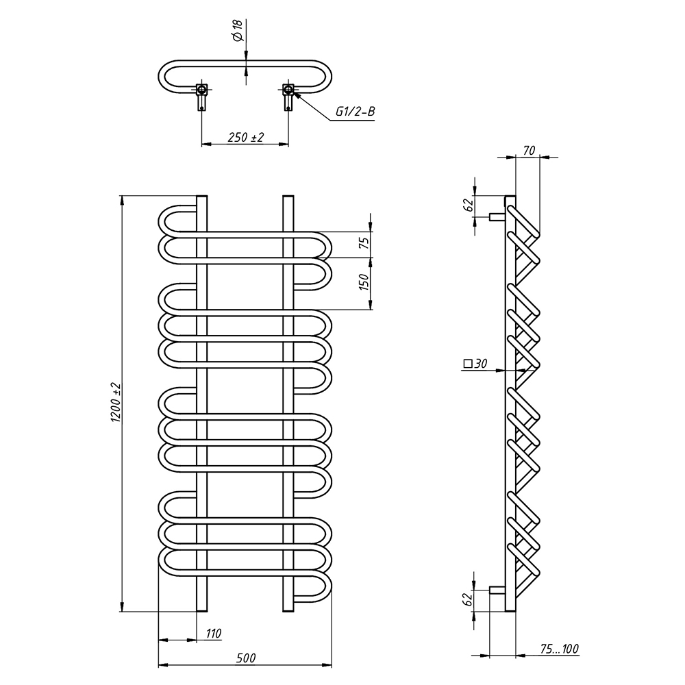 - Размер полотенцесушителя 50х120 см
