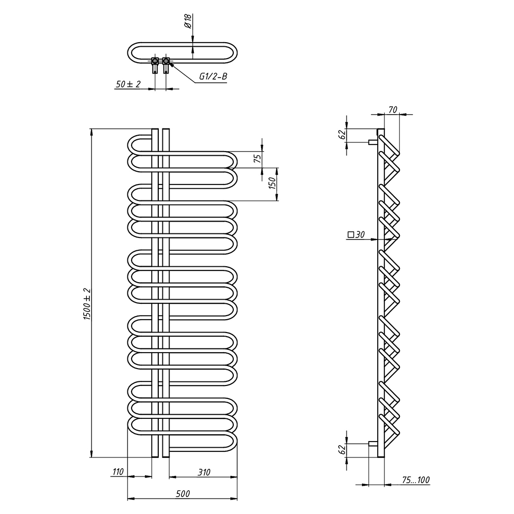 Полотенцесушитель водяной Grota Stelle KR-00055007 50x150 см