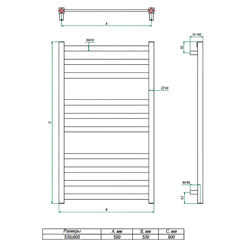 - Размер полотенцесушителя 53х90 см