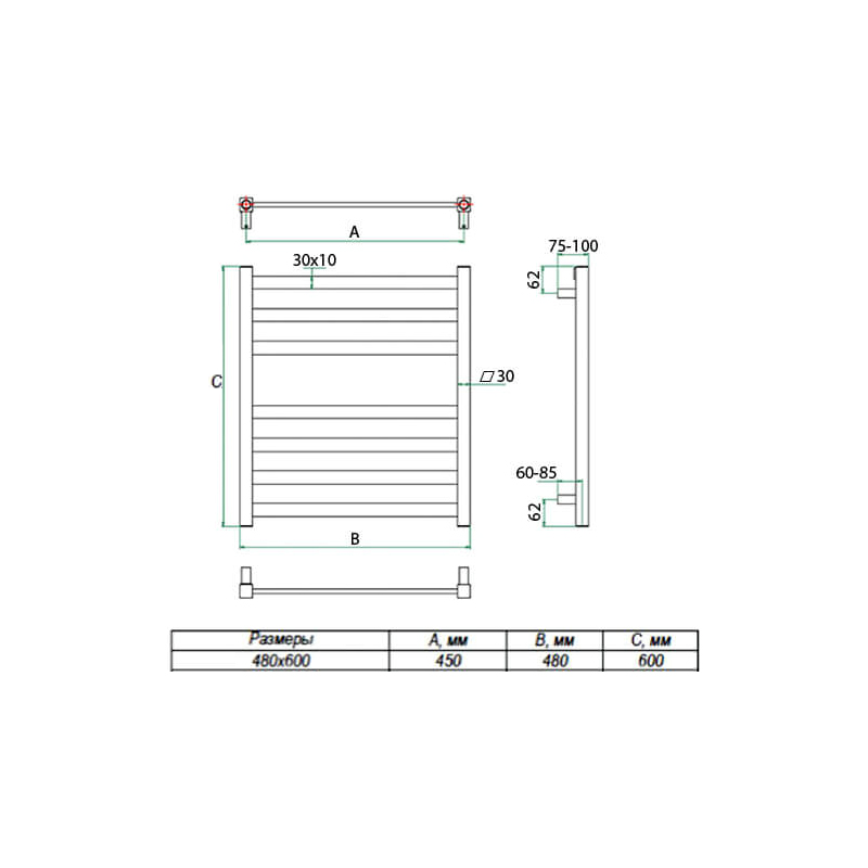 - Размер полотенцесушителя 48х60 см