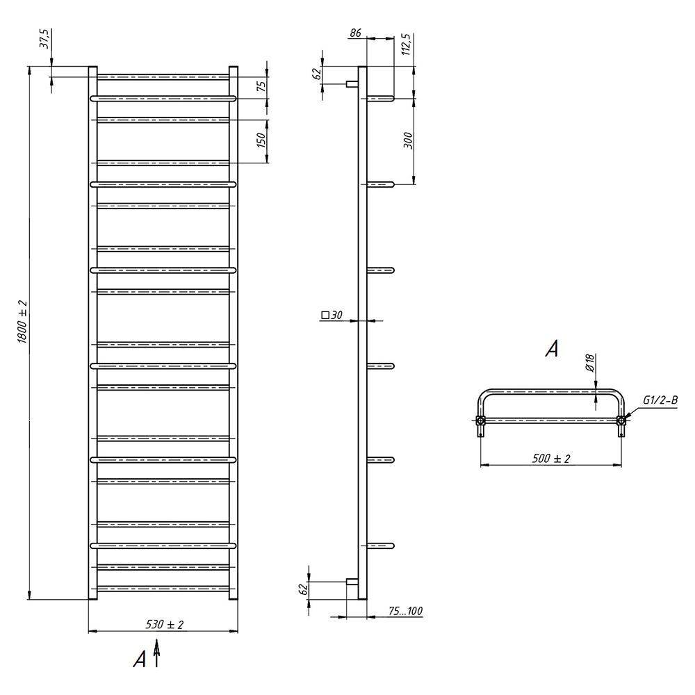 - Размер полотенцесушителя 53х180 см