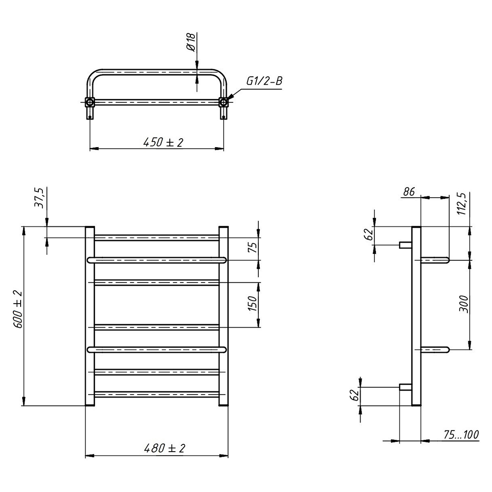 - Размер полотенцесушителя 60х48 см
