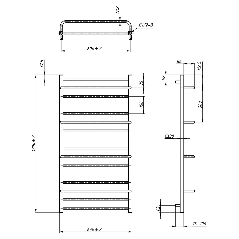 Полотенцесушитель водяной Grota Vista KR-00055070 63х120 см