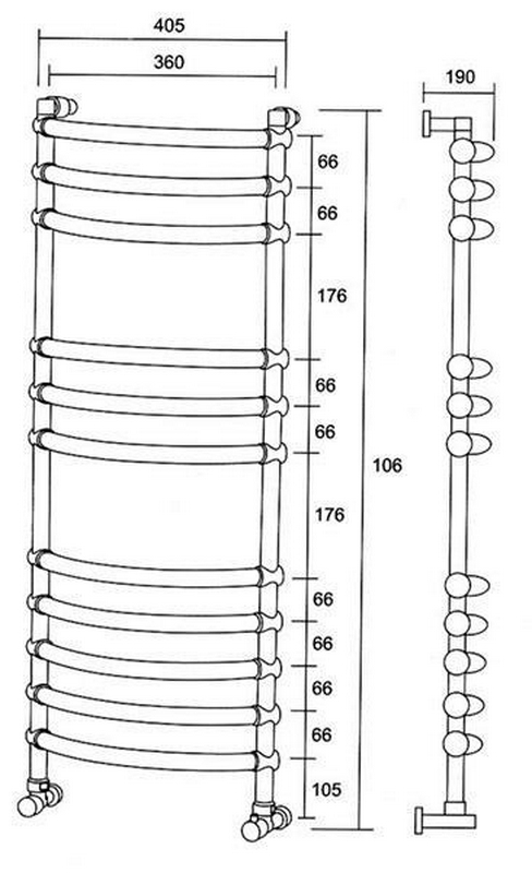 - Размер полотенцесушителя 40,5х106 см
