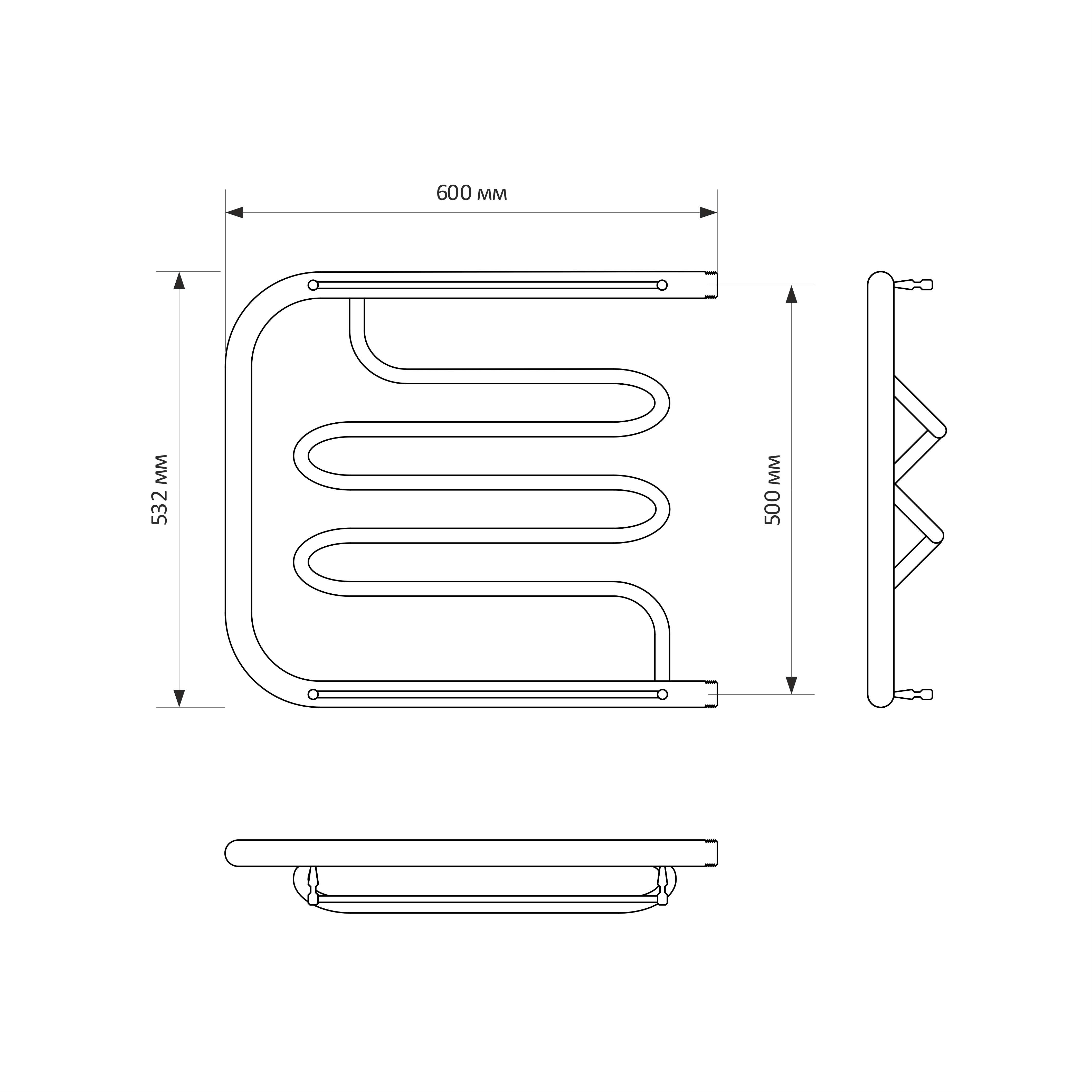 - Размер полотенцесушителя 60х53,2 см