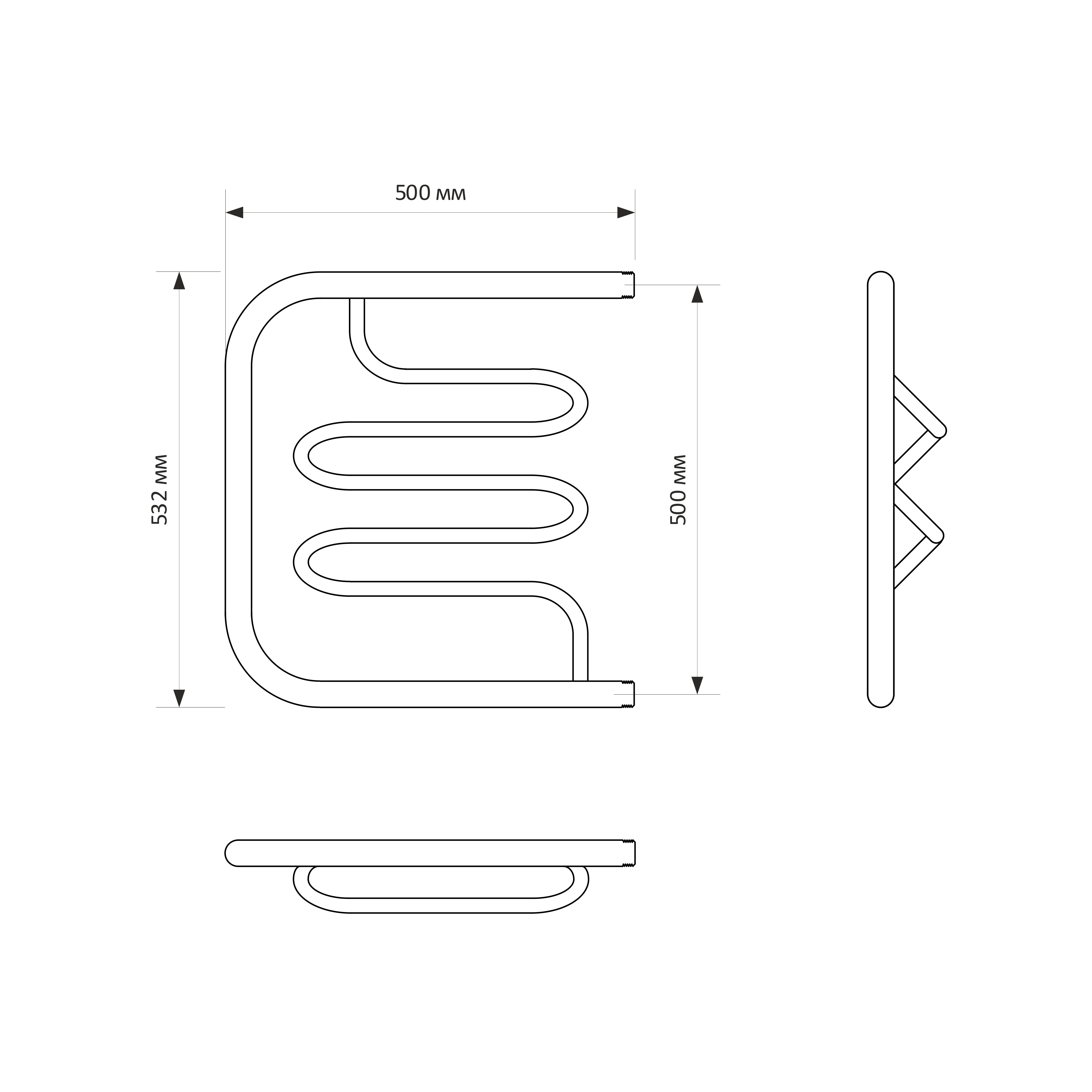 - Размер полотенцесушителя 50х53,2 см