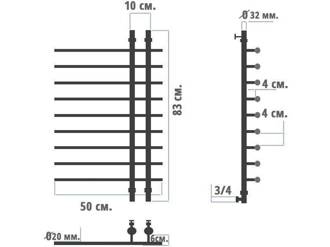 - Размер полотенцесушителя 50х83 см