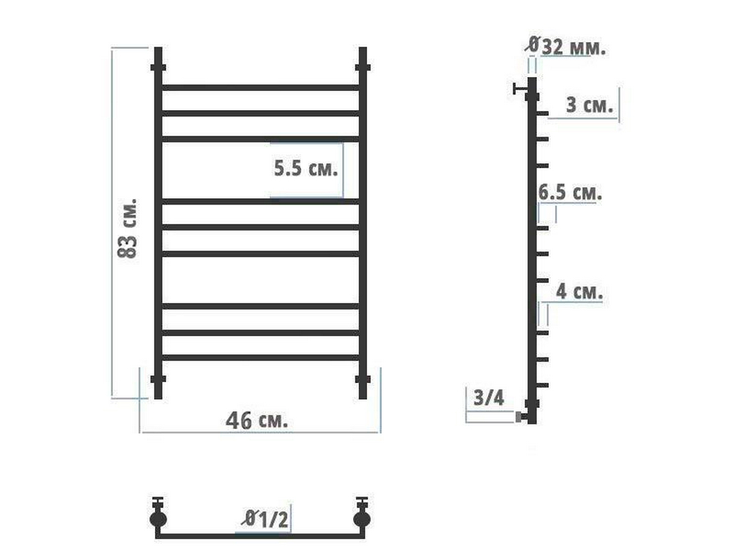 - Размер полотенцесушителя 46х83 см