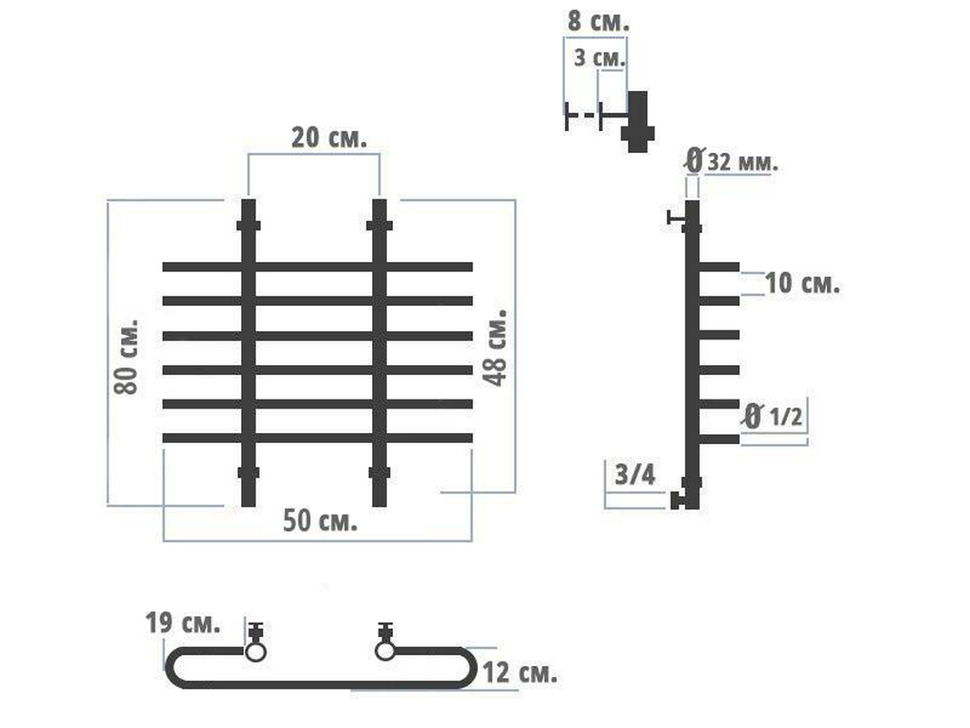 - Размер полотенцесушителя 50х80 см