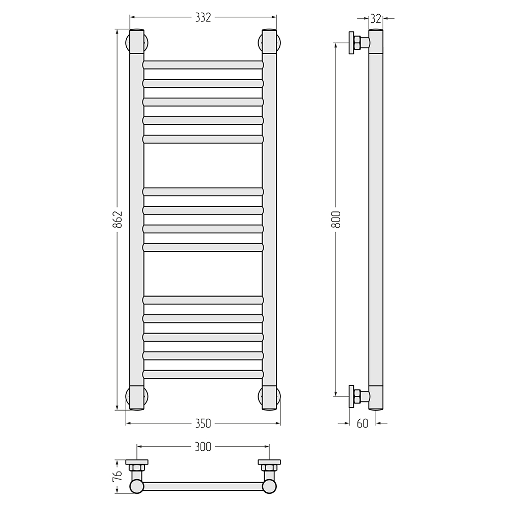 - Размер полотенцесушителя 35х86,2 см