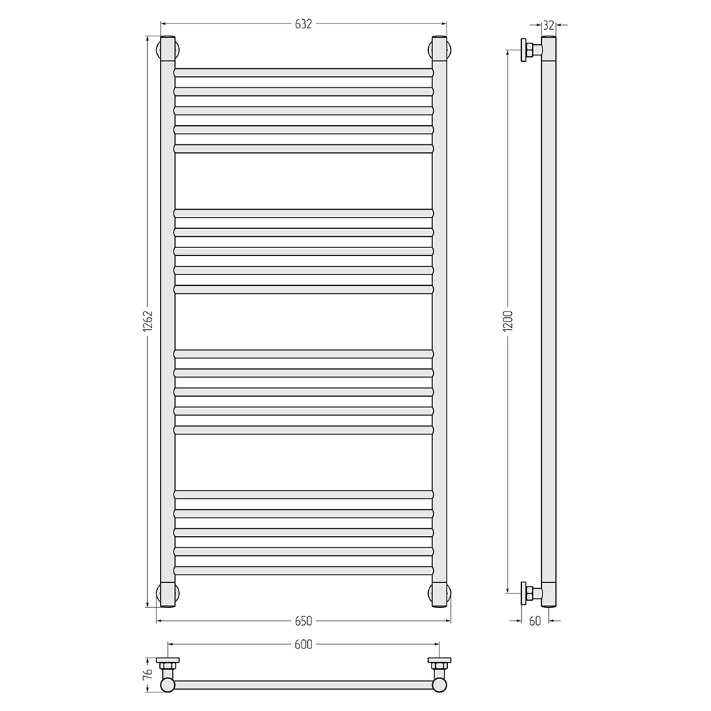 - Размер полотенцесушителя 65х126,2 см