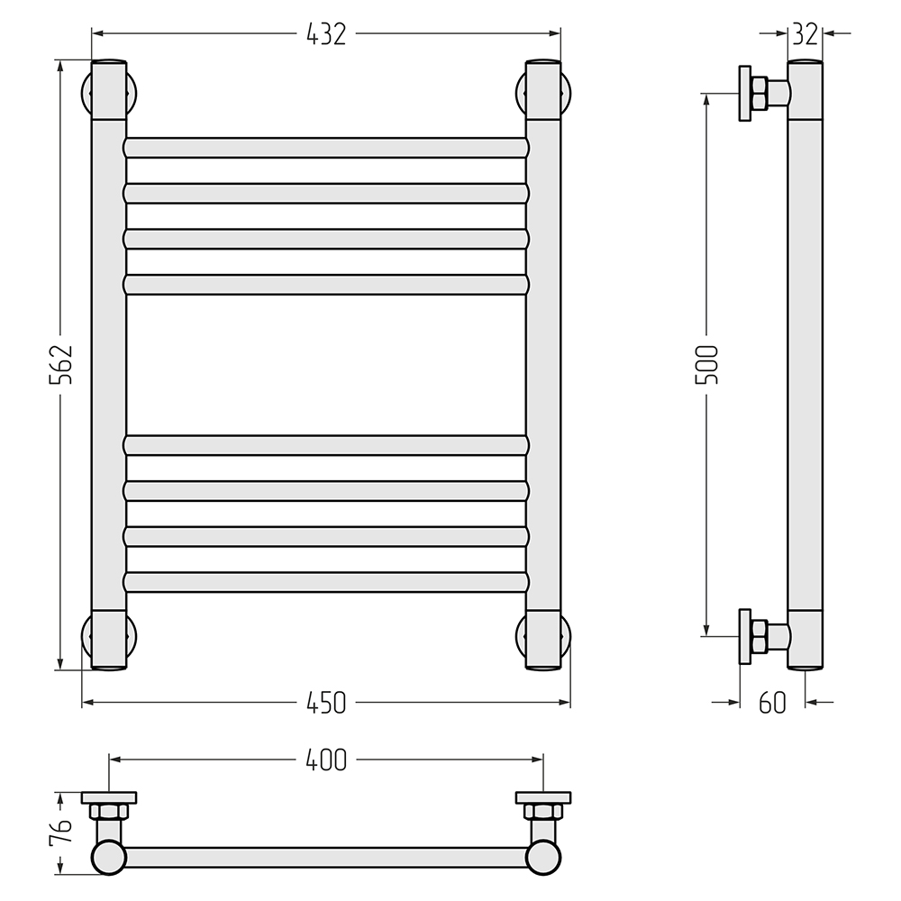 - Размер полотенцесушителя 45х56,2 см