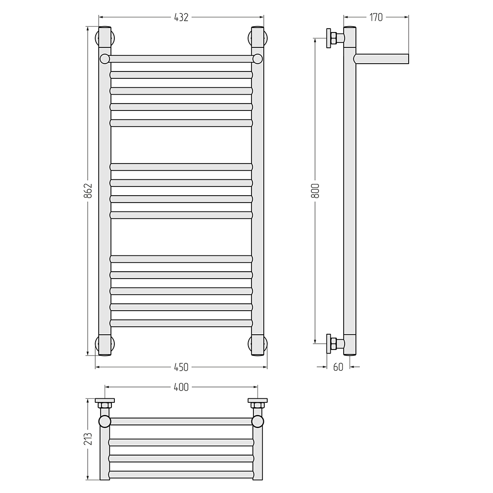 - Размер полотенцесушителя 45х86,2 см