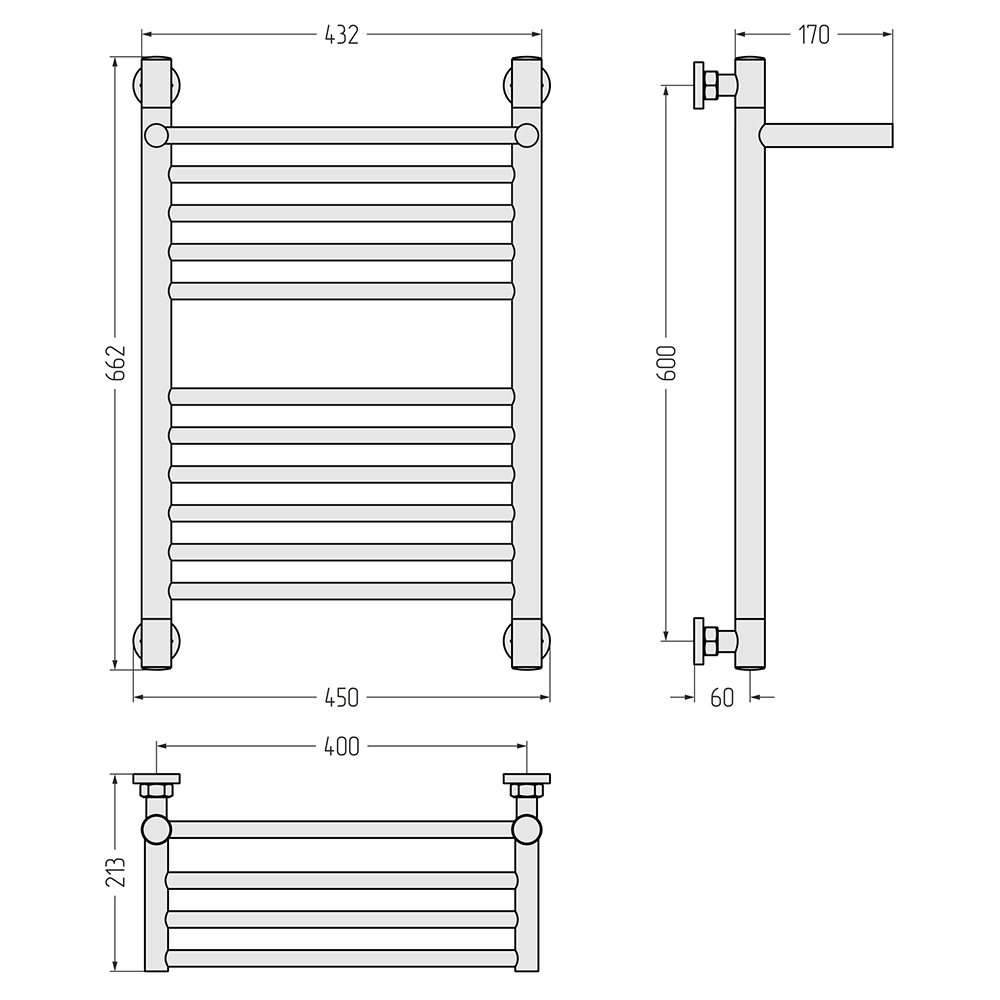 - Размер полотенцесушителя 45х66,2 см