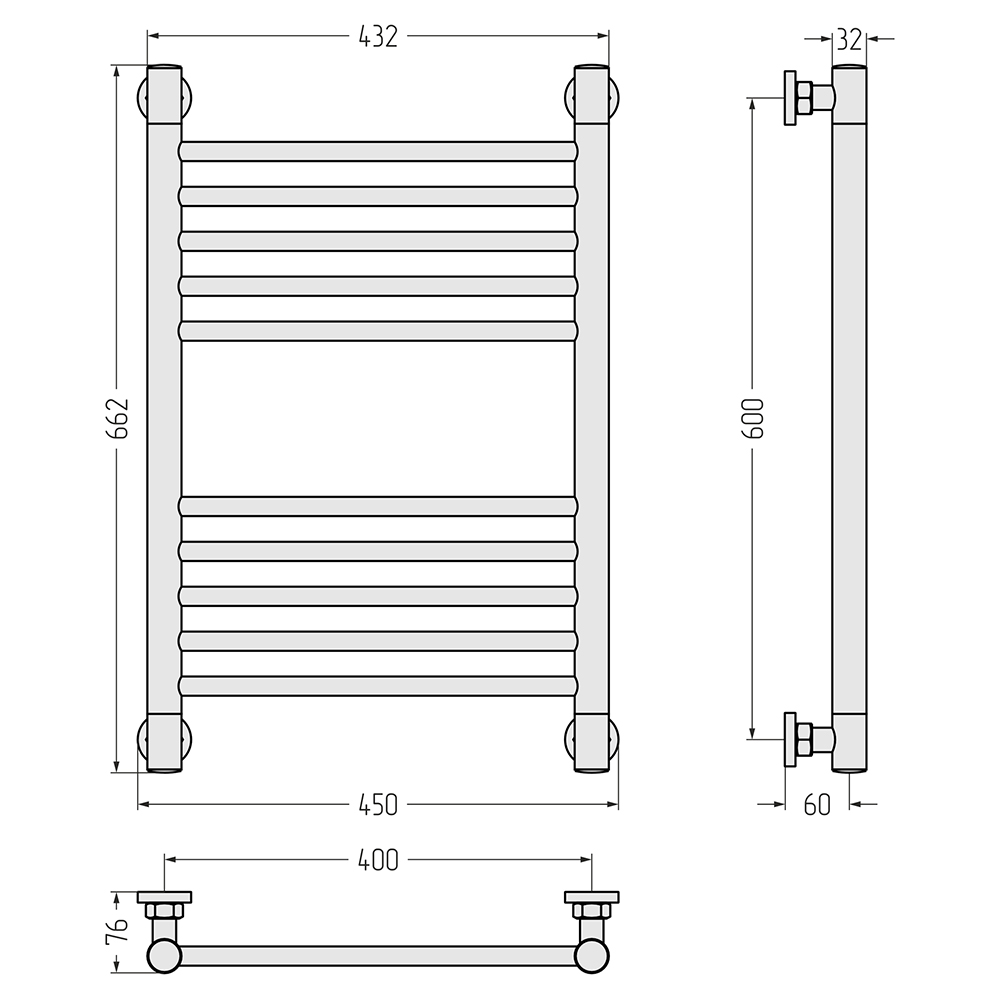 - Размер полотенцесушителя 45х66,2 см
