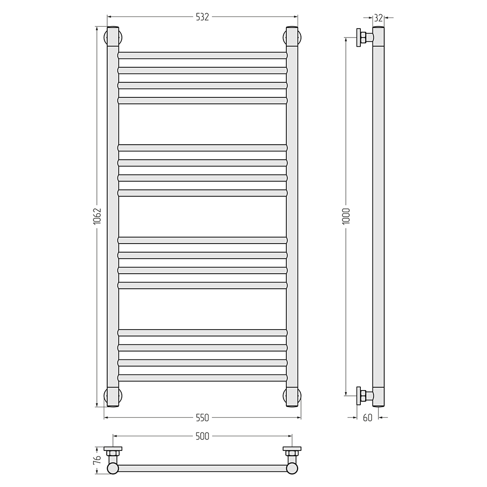 - Размер полотенцесушителя 55х106,2 см