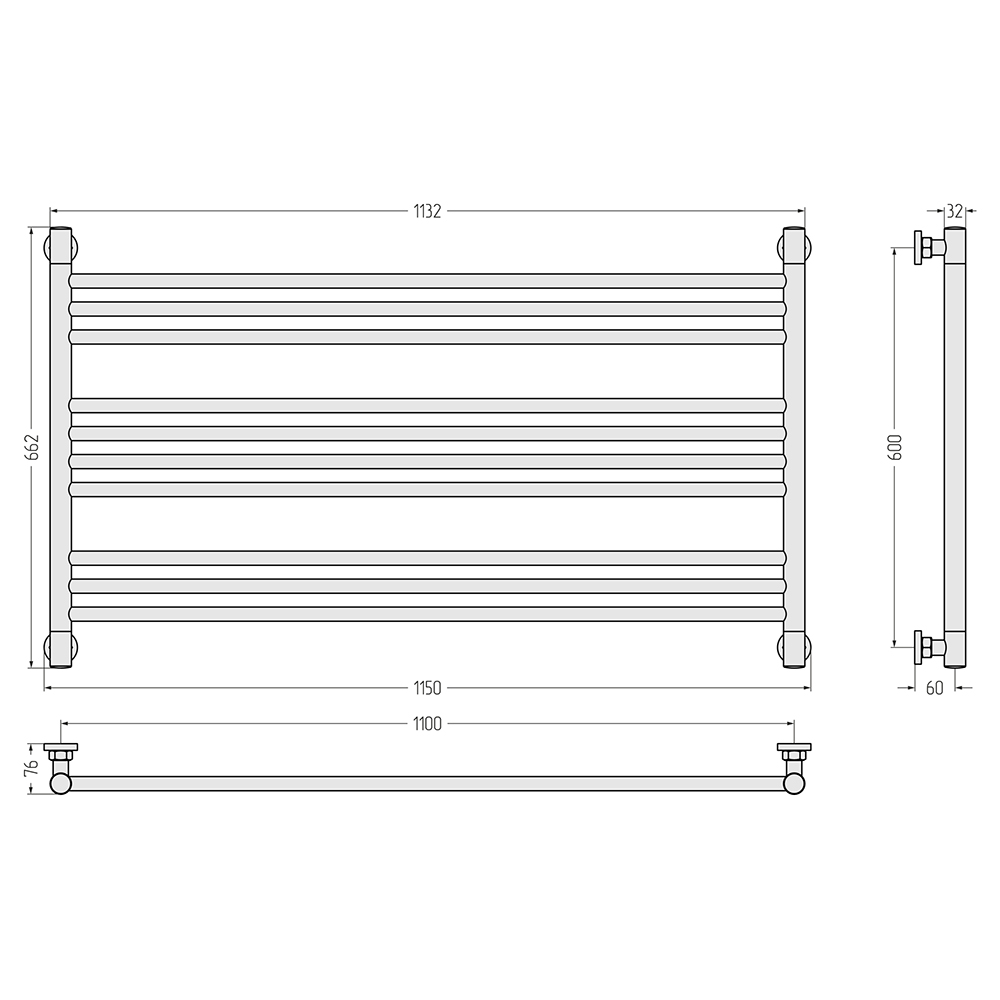 - Размер полотенцесушителя 115х66,2 см