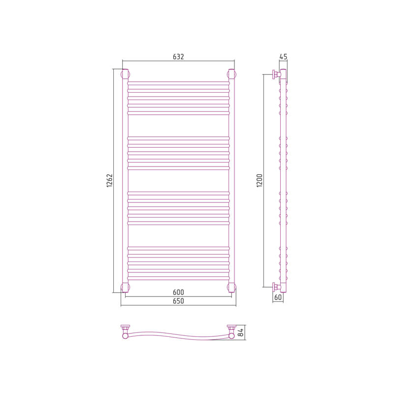 Оснащение : Полотенцесушитель, угловые элементы, спускной клапан, отражатели, эксцентрики и опоры кронштейнов, декоративные заглушки, комплект прокладок, шестигранные ключи, дюбели и саморезы