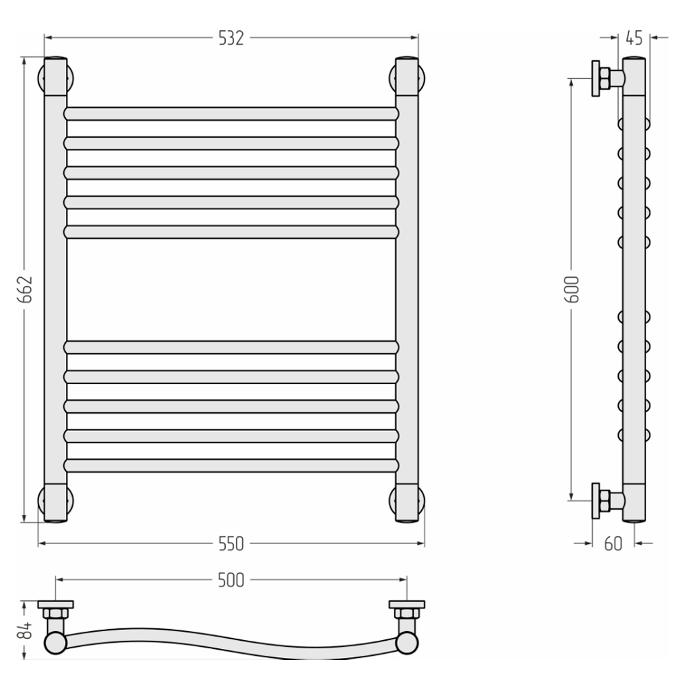 - Размер полотенцесушителя 55х66,2 см