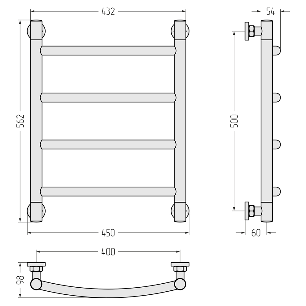 - Размер полотенцесушителя 45х56,2 см