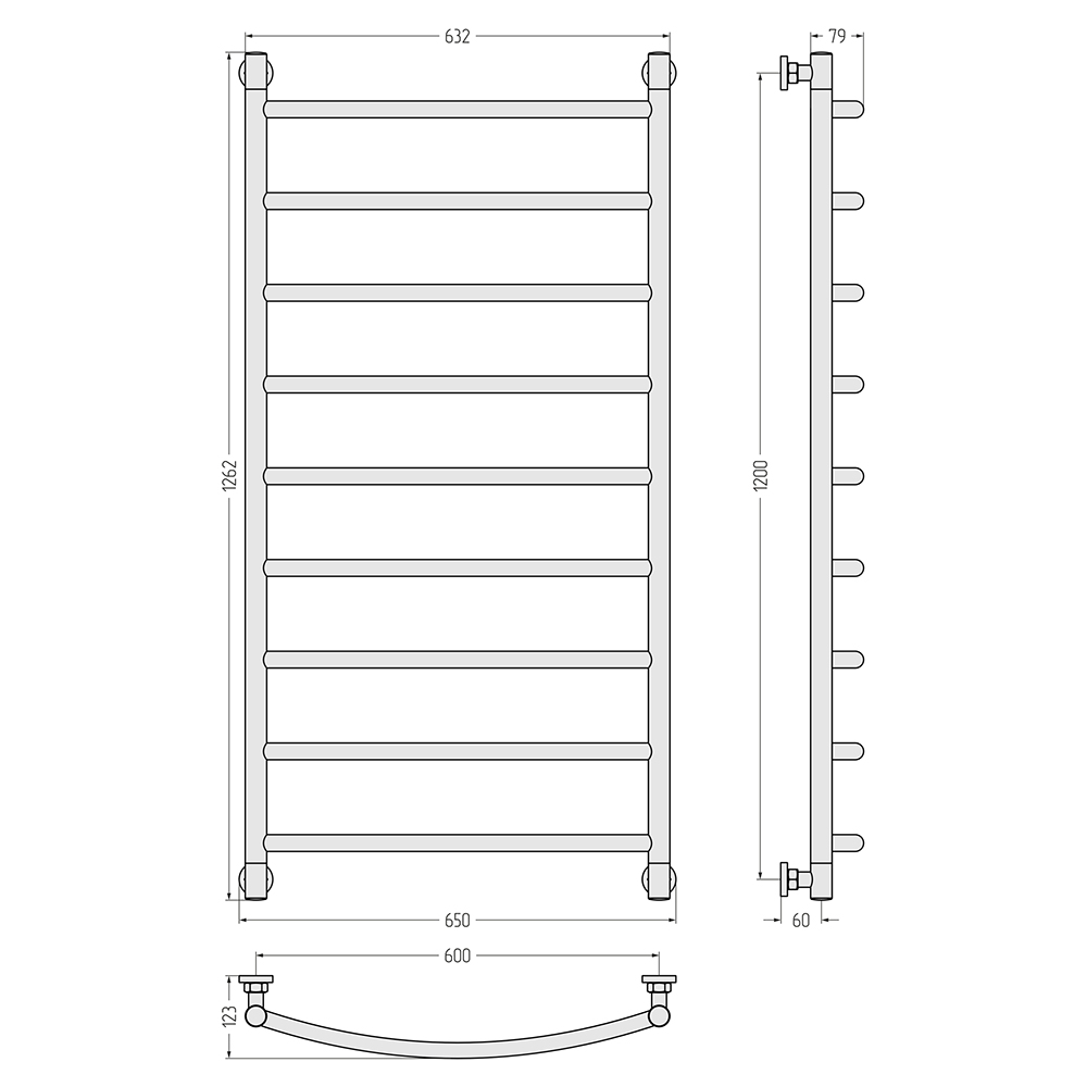 Полотенцесушитель водяной Сунержа Галант+ 00-0200-1260 120х60 см