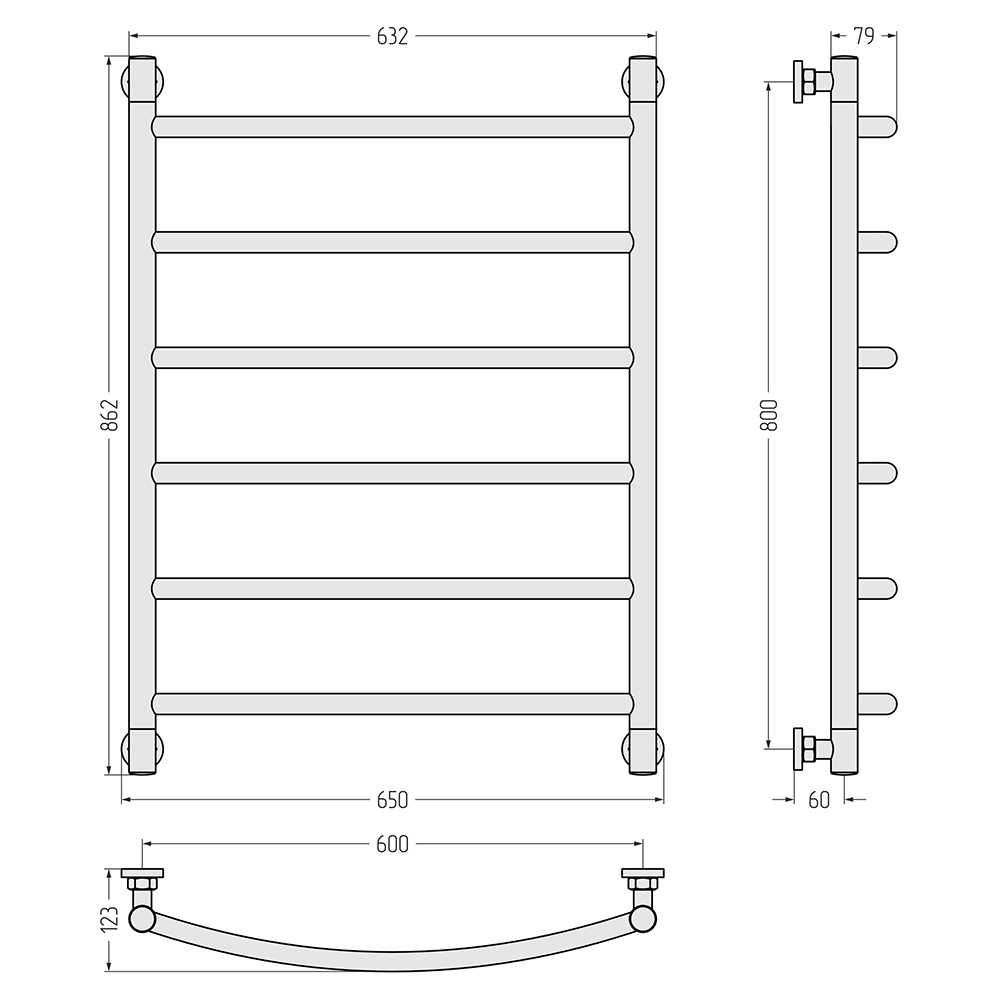 - Размер полотенцесушителя 65х86,2 см