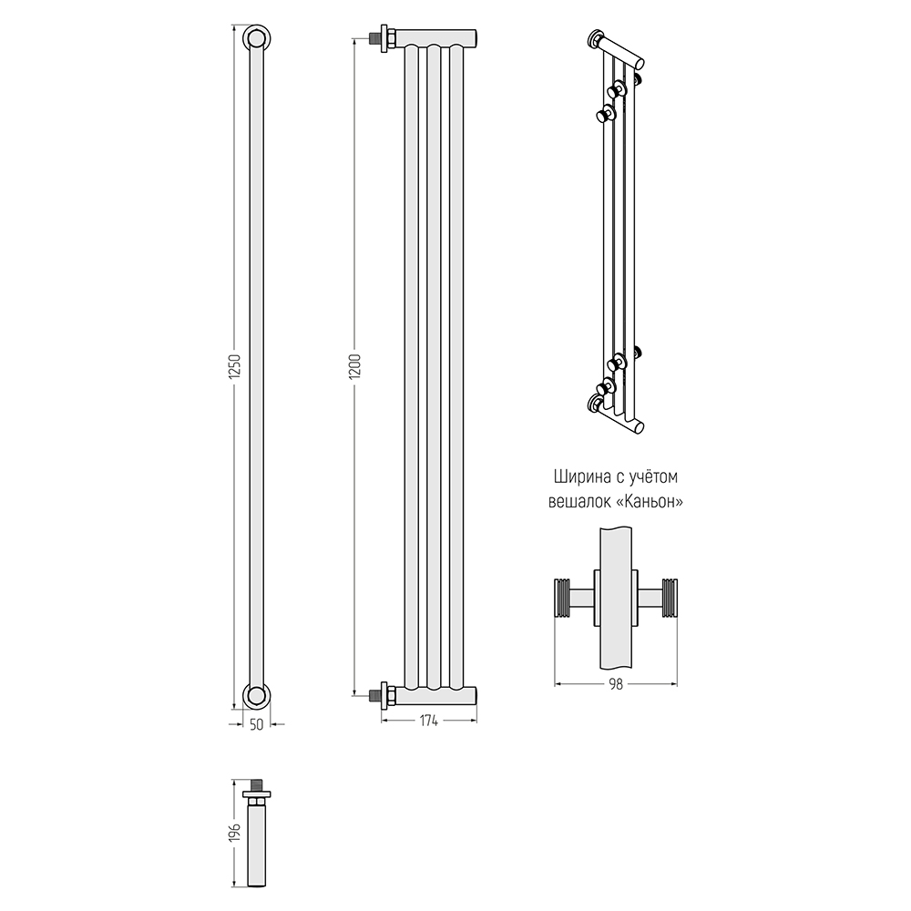 - Размер полотенцесушителя 5х125 см